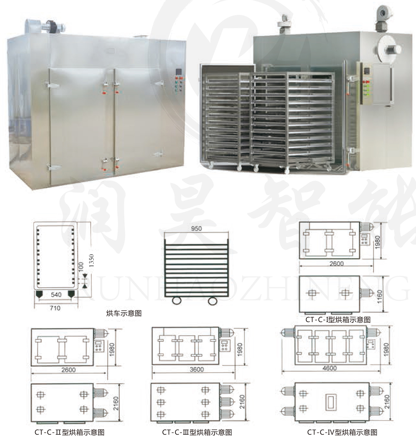 大部分热风在箱内循环,热效率高,节约能源。利用强制通风作用,箱内设有可调式分风板,物料干燥均匀。热源可采用蒸汽、热水、电、远红外,选择广泛。整机噪音小,运转平衡,温度自控,安装维修方便。适用范围广,可干燥各种物料,是通用干燥设备。