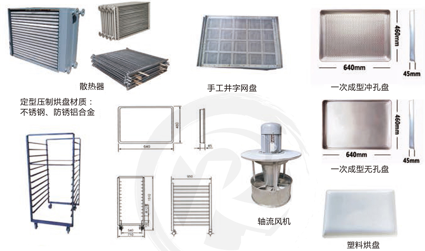 ● 本广出厂烘车,烘盘尺寸统一,可以互换。