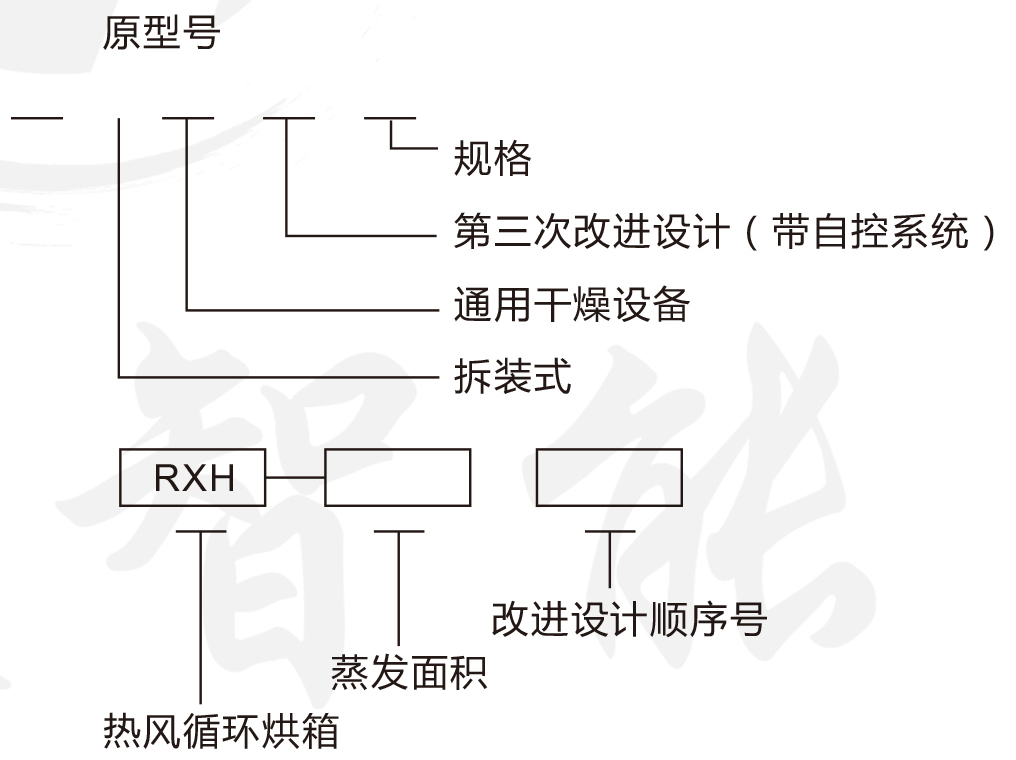 | 行业标准型号 | 技术参数型号规格 | 每次千燥量(kg) | 配用功率(kw) | 耗用蒸汽(kg/h ) | 散热面积(m²) | 风量( m³/h ) | 上下温差(℃) | 配用烘盘 | 外形尺寸(LxWxh)mm | 配套烘车(台) |